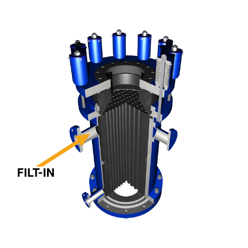 Mesh filter in service inlet nozzle to prevent water drop in steam or filter dirty media.